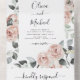 Dusty Pink Floral Rose und Eukalyptus Botanische Vegetation Wasserfarbe Hochzeitsfeier oder Sommerhochzeit und UAWG Einladungen - beinhaltet schöne und elegante Schriftzeichen mit modernen tropischen botanischen Blume und Grün für die besondere Hochzeitsfeier.