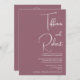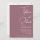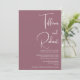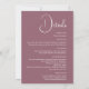 Steigen Sie mit der Minimalistischen Einladung zur Hochzeit in das Dusty Pink Hochzeitsgeschäft ein. Die Einladung mit einem weichen, rosafarbenen Hintergrund und elegantem weißem Text zeigt die Namen der Paare, das Hochzeitstag und den Veranstaltungsort auf der Vorderseite in einem sauberen, modernen Design. Der Rücken bietet zusätzliche Hochzeitsdetails, damit die Gäste in einem stilvollen und organisierten Format alles haben, was sie brauchen. Ideal für romantische, boho oder moderne Hochzeiten, fügt diese Einladung Ihrem besonderen Tag eine Touch von Eleganz und Wärme hinzu.