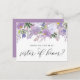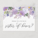 Werden Sie meine Ehrenschwester sein? Lila Blumenschwester der Ehrenkarte. Es verfügt über eine Aquarellgarage mit lila Pfannkuchen und Rose mit moderner Kalligraphie. Personalisieren Sie diese durch Hinzufügen von Namen und Nachrichten.