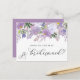 Wirst du meine Junior-Brautjungfrau sein? Lila Blumenthema jr bridesmaid Vorschlag Karte. Es verfügt über eine Aquarellgarage mit lila Pfannkuchen und Rose mit moderner Kalligraphie. Personalisieren Sie diese durch Hinzufügen von Namen und Nachrichten.