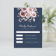 Dusty Pink Roses Navy Blue Wedding RSVP Karte