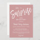 Erstellen Sie eine personalisierte Überraschungs-Party Einladung. Diese Party Einladung bietet ein großes und schönes Kalligraphieskript mit einem staubigen rosa Hintergrund. Sie können ihn ganz einfach mit Ihrem eigenen Text anpassen und nach Ihren Wünschen anpassen. Bitte beachten Sie: "Shhh..." und "Überraschung" können nicht bearbeitet werden.