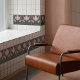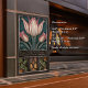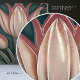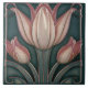 Dusty Pink Tulips auf Blue Symmetric Art Nouveau Fliese