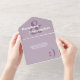 Ein modernes typografisches Design in staubigen Pflaumentönen lila und weiß mit einer coolen Textpaarung von Schriftart, die sich gegenseitig ergänzen, und extra große, fette Symbole machen dies zu einer einzigartigen und interessanten lässigen Hochzeitsankündigung und Antwortkarte, die alle in einem ohne Umschlag. Es ist einfach, sich anzupassen, indem man einfach eigene Daten in die Vorlagen einfügt.