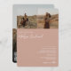 Moderne, schicke und elegante Hochzeitseinladung mit individuellen Namen mit handgeschriebener Kalligraphie in staubrosa Rosa und Weiß und 3 Fotos. Alle Texte, Namen und Hintergrundfarben sind anpassbar. Eine einfache und minimalistische Einladung. Fügen Sie Ihren qr-Code für ein All in einem Hochzeitsladen mit uAwg, Details und mehr Informationen.