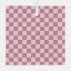 Pink and white checkerboard pattern with evenly spaced squares. The design is simple, creating a playful and retro feel.