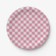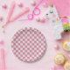 Pink and white checkerboard pattern with evenly spaced squares. The design is simple, creating a playful and retro feel.