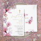 Diese elegante staubige Rose transparent Blumenmuster erste heilige Kommunion Einladung Postcard kann mit Ihren Informationen in der schicken Typografie mit Ihrem Monogramm auf der Rückseite personalisiert werden. Entwickelt von Thisisnotme©
