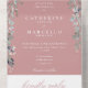 Das Ganze in einer Hochzeitseinladung mit einer wunderschönen Blumenkaskade, eleganter Typografie und Monogramm-Initialen auf einem staubigen Hintergrund der Rose. Die Einladung enthält eine perforierte RSVP-Karte mit Ihrem Hochzeitswebseiten QR Code und Details. Entwickelt von Thisisnotme©