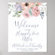 Diese staubigen Rose-Blumengestühle laden zu Hochzeitsfeiern ein. Das romantische Blumendesign besticht durch eine lila, rot-rosa und pfirsichfarbene Blume, die in einem wunderschönen, sanften Pastellbukett angeordnet ist. Passen Sie das Poster an mit dem Namen der Braut und des Bräutigams, dem Datum und dem Ort der Hochzeit.