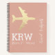 Ein einfaches und modernes rosa (staubige Rose / es ist ein gedämpftes Schatten, das für ein raffiniertes und elegantes Design verwendet werden kann) Notebook mit dem Bild eines Imitats Gold Flugzeug, Ihrem Namen und Initialen ... und mit Ihrem speziellen Reisetitel.