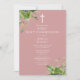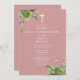 Dusty Rose Greenery Monogram First Holy Communion Einladung
