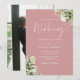 Dusty Rose Grüne Blätter Elegantes Foto Hochzeit Einladung