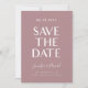 Moderne und einfache Save the Date-Karte mit einem blockfreien Schriftart, der auf einem staubigen Hintergrund der Rose "Save the Date" sagt. Sie können ein Foto auf der Rückseite hinzufügen.
