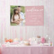 Dieses rosa Hochzeitsbanner in der Rose zeigt eine zarte, weiße Typografie mit dem Foto Ihrer Verlobung für eine romantische Nachmittagszeremonie für eine weibliche Braut, die sanfte Farben und minimales Skriptdesign mag. Weiche pastellfarbene Dekoration.