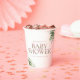 Eine elegante Baby-Duschpapiertasse mit schicker, staubiger Rose, rosa Typografie und hübschem botanischem Grün. Entwickelt von Thisisnotme©