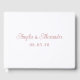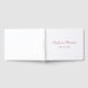 Erstellen Sie Ihr eigenes, modernes, schmuckfreies Gästebuch. Sie können den weißen Hintergrundfarbencode so ändern, dass er zu Ihrer Hochzeitspalette passt. Ändern Sie die Vintage staubige Rosa- oder Rose-Goldfarbe des Textes, wenn Sie möchten. Übertragen Sie das Design auf andere Geschenke und Produkte. Passen Sie die Textnachricht je nach Bedarf an der Wirbelsäule an oder löschen Sie sie.