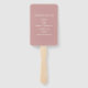 Behalt deinen Gästen cool und informiert mit diesem eleganten, staubigen Rose rosa Hochzeitsprogramm Handfan. Mit einem minimalistischen Design und moderner Typografie bietet dieser Handventilator eine raffinierte und praktische Touch für Ihre Hochzeitsfeier. Die weiche Farbe und das saubere Layout zeigen Ihre Details des Hochzeitsprogramms in einem stilvollen und leicht lesbaren Format. Diese Fans sind perfekt für jedes Hochzeitthema geeignet und sorgen dafür, dass Ihre Gäste sich bei der Begleitung Ihrer besonderen Tagesveranstaltungen wohl bleibe fühlen.