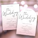 Für besondere Designbedürfnisse können Sie sich direkt per E-Mail an choosehappystudio@yahoo.com in Touch mit dem Designer setzen. Diese moderne, minimalistische Hochzeitseinladung besticht durch eine elegante Schriftrolle. Es spielt mit der Einfachheit eines Schwarz-Weiß-Typografie-Designs und fügt nur einen Hauch von rosa staubigen Rose hinzu. Im Hintergrund der Einladung können Sie Ihre Hochzeitswebsite-Informationen sowie einen QR-Code für Ihre Gäste zum Scannen hinzufügen. Es ist die perfekte Wahl für Paare, die saubere und moderne Eleganz schätzen.