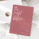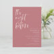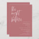 Minimalistische Hochzeitsdinner mit moderner Probe-Schriftart, in der "die Nacht vor" steht. Der Hintergrund ist staubige Rose.