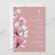 Dusty Rose Transparente Blumenmonogramm Taufe Einladung