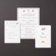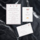 Design front features a white background to your customizable text. Heading is displayed in an elegant font in top center. Following the traditional format for a wedding menu, all text is customizable and displayed in a dusty-rose colored Nuptial font. Entire design is framed by a dusty-rose and white border.