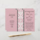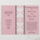 Elegantes, einfaches zweifaches Hochzeitsprogramm mit Vintagem Damast-Muster auf einer staubigen Rose mit rosa Hintergrundfarbe. Verwenden Sie die Option "IT KENNEN", um Text zu bearbeiten und den Abstand zu ändern. Bei Erhalt geklappt.