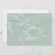 Typografie für immer in Liebe in einer extravaganten Skriptkalligraphie - hervorgehoben in einer Art und Weise, dass es fast geprägt erscheint. Minimal einzigartiger Typ für Namen und Datum: Weiße, durchsichtige Eukalyptus-Blätter graben die Vorderseite hinter dem Text auf einem staubigen Weisheitshintergrund. Auf der Rückseite ist eine Aquarellversion der anemonischen Blume und Blätter in voller Farbe auf einem weißen Hintergrund. Design von Whimsical Artwork™