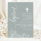 Dusty Sage White Floral Elegante Script Taufe Einladung