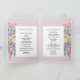 Diese wunderschönen gefalteten Hochzeitsprogramme ergänzen unsere Wildblume-Kollektion und haben eine staubige, rosa Außenfassade mit grünem botanischem Blattwerk und rosa Blume. Fügen Sie Ihre Namen, Hochzeitsort und Datum auf der Vorderseite. Personalisieren Sie das Interieur mit Ihrer Zeremonie und Brautparty-Informationen, sowie eine Dankeskarte an Ihre Gäste.