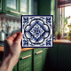 Diese Keramik Kachel aus der niederländischen Delft Blue Tradition ist ein atemberaubendes Beispiel für Kunst und Handwerk. Die Kachel weist ein symmetrisches Blumenmotiv auf, mit einer zentralen Blume, umgeben von kleineren Blätter. Die Fliesen sind in den traditionellen Farben Delft Blau und Weiß verglast. Es ist perfekt, um jedem architektonischen Ambiente eine Touch Eleganz zu verleihen, und kann zum Dekorieren von Böden, Wänden, Kaminen oder Möbeln verwendet werden. Das symmetrische Blumenmotiv ist ein klassisches Delsoftware-Motiv, das die Kunst und das Handwerk der niederländischen Tradition Delft Blue präzise wiedergibt.
