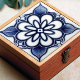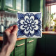 Diese Keramik Kachel aus der niederländischen Delft Blue Tradition ist ein atemberaubendes Beispiel für Kunst und Handwerk. Die Kachel weist ein symmetrisches Blumenmotiv auf, mit einer zentralen Blume, umgeben von kleineren Blätter. Die Fliesen sind in den traditionellen Farben Delft Blau und Weiß verglast. Es ist perfekt, um jedem architektonischen Ambiente eine Touch Eleganz zu verleihen, und kann zum Dekorieren von Böden, Wänden, Kaminen oder Möbeln verwendet werden. Das symmetrische Blumenmotiv ist ein klassisches Delsoftware-Motiv, das die Kunst und das Handwerk der niederländischen Tradition Delft Blue präzise wiedergibt.