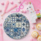 Set von acht 9" Papier-Tellern mit einem Bild eines niederländischen Delft-Design. Siehe dazu Espressotasse, Tasse, quadratische Keramik, quadratische Trivette und Untersetzer. Sehen Sie sich die gesamte Sammlung This & That Plate im ZUHAUSE-Bereich an.