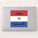 Holländischer Fußballspieler, der Punkt als Ball-Holländische Flagge im Hintergrund verwendet, anpassbar, ändern die Jerseynummer und den Namen in die Lieblings-Spieler
