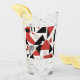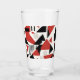 A bold composition of red, black, and white geometric shapes, including triangles, rectangles, and lines, forming a modern abstract design.