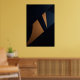 An abstract composition defined by angular shapes and diagonal layers that create a dynamic visual flow. Deep blue tones blend with soft golden accents, resulting in a sophisticated and modern artwork, ideal for spaces that value elegance and contemporary design.