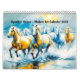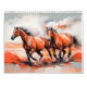 This powerful calendar showcases twelve expressive artworks of horses in motion. Painted in a modern, energetic style, each image captures the strength, grace, and freedom of horses galloping through waves, wind, and open landscapes. The compositions blend dynamic brushwork with vivid color and dramatic light, evoking movement and emotion in every scene.