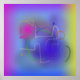 Die farbenfrohe abstrakte Komposition vereint lebendige Farbtöne wie Rosa, Blau, Grün und Gelb. Verschiedene Formen und Linien überschneiden sich, um einen dynamischen und spielerischen Effekt zu erzeugen.