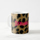 Tasse mit heißem Rosa fasst "dynamische Diva" auf Leoparddruckhintergrund ab