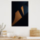 Eine abstrakte Komposition, definiert durch eckige Formen und diagonale Schichten, die einen dynamischen visuellen Fluss erzeugen. Tiefe Blautöne verschmelzen mit sanften goldenen Akzenten, was zu einem anspruchsvollen und modernen Kunstwerk führt, ideal für Räume, die Eleganz und zeitgenössisches Design schätzen.