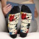 Mit diesen dynamischen Spritzer-Socken, die auf einem cremefarbenen Hintergrund kräftig in Rot, Blau, Gelb und Schwarz übergehen, können Sie sich in kühne Kreativität versetzen. Das geometrische Gitter fügt dem expressiven Design einen strukturierten Kontrast hinzu und macht diese Socken zu einer perfekten Mischung aus Chaos und Ordnung. Ideal für Kunstliebhaber und Stilsuchende, fügen sie eine beeindruckende und einzigartige Touch zu jedem Outfit hinzu.