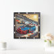 Diese lebendige Wanduhr erfasst die aufregende Energie des Motorsports mit einer dynamischen Abbildung von Rennautos auf einer Strecke, komplett mit Geschwindigkeitslinien und einer untergehenden Sonne. Es ist eine bunte und künstlerische Uhr, perfekt für Automobil-Liebhaber und Sportfans. Dieses einzigartige Dekorwerk verleiht jedem Raum im Inneren einen feinen und kreativen Touch und verleiht dem Wettbewerb eine ganz besondere Note.
