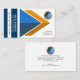 Ein einfacher unbedeutender Entwurf. Das blaue Dreieck und eine zugrunde liegende orange Schicht am Mittelteil, ist, Bewegung, eine Bewegung vorwärts einbringen zu bedeuten zur hervorragenden Leistung. Ihre renommierte Namen- und Jobtitellüge umgewandelt an der dunkelblauen Spalte zur links Seite der Karte; Neben ihr in der weißen Spalte, ist die Kontaktdetails. An der Rechteecken-Erholung das Imitatgoldlogo, während am anderen Ende, Sie eine Slogan tagline Wahl nahe der Basis der Karte haben.