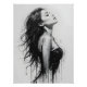Ein neigbares Aufwärtsprofil einer Frau, die in mittlerer Bewegung gefangen war, als ob sie ihren Kopf drehen würde. Ihre Haare wandern in ausdrucksvollen Farbstrichen zurück, ergänzt durch dynamische vertikale Tropfen, die Bewegung und Energie betonen. Das Kunstwerk vermittelt lebendig Bewegungsgefühl, Vitalität und spontanen Ausdruck durch kühne Farbtechniken und flüssige Linien.