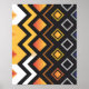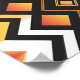 Dieses gewagte und komplizierte geometrische Design zeichnet sich durch eine auffallende Kombination aus Diamanten, Zickzacken und Gradientenformen aus. Die links Seite zeigt lebendige orange und gelbe Quadrate, während die rechte Seite in dunklere Blau- und Schwarzwöne übergeht, mit abwechselnden Konturen von Diamanten und Linien. Die scharfen Kontraste zwischen warmen und coolen Farben, zusammen mit den präzisen geometrischen Formen, schaffen ein ausgeglichenes und dennoch dynamisches visuelle. Ideal für moderne Designs, Tapeten und dekorative Kunst.