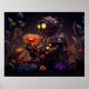 Dystopischer Roboter mit orangefarbener Blume Poster