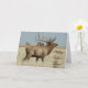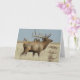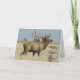 Bull Elk Herd Boss "capted" Karte. Dieses Foto eines riesigen Bullenelchs mit riesigen Antlers wurde an einem heißen Herbstnachmittag aufgenommen. Sie können die Hitzewellen im Hintergrund sehen.