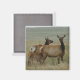 Kuh Elk und Calf Magnet. Wenn sich die Kuhelchen bedroht fühlen, werden sie den jungen Elch so umgeben, wie es diese beiden Kühe tun, an diesem Punkt wäre es unklug, sich jedem näheren zu nähern. Elche sind große Tiere und werden sich aufladen, wenn sie sich zu nah fühlen.