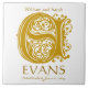 E Gold Monogramm auf Weiß - Namen Hochzeitdatum Ti Fliese