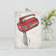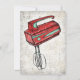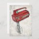 Der Elektrische Hand Mixer verfügt über einen Vintagen Küchenblender in Rot mit weißem, aqua- und schwarzem Trimm auf weißem, bedrücktem Hintergrund.